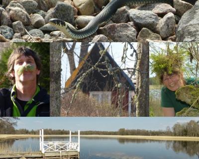 Die Abende verbringen wir viel intensiver, da wir noch immer keinen Fernsehanschluß haben und so frißt den Abend der Tatort auch nicht auf. Micha hat seinen ersten Barsch gefangen und das Ruderboot haben wir ausgefahren. Wir sitzen am See und spielen Tierstimmen raten. man hört hier nur den Wind, das Wasser und die Tiere. Ganz selten mal ein Flugzeug und noch viel seltener ein Auto. Tiere gibt es genug und gesehen haben wir Ringelnattern, Rehe, Hasen, Kraniche Adler, verschiedene Gänse, Waldschnepfen und Baumenten. Die brüten hier direkt vor unserem Haus in einem hohlen Baum.