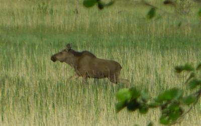 Unsere ersten Elche stehen da und fressen sich den Bauch voll. Scheinen uns gar nicht zu beachten, nur fressen und fressen und wir hätten fast unser Fleisch vergessen. Nach einer viertel Stunde traben die Elche glücklich in den nahen Wald und wir glücklich an den Esstisch.