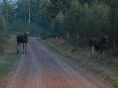 Jeder der mal nach Schweden fährt möchte auch einen Elch sehen. Wir haben die Elche sozusagen vor der Haustür. Unser Birnenbaum etwa 100 Meter vom Haus entfernt, scheint der momentane Lieblingsplatz, die Smultronställe der Elche zu sein. Von den etwa 200 Birnen auf dem Baum sind uns noch 30 geblieben. Die versuchen wir nun vehement gegen die gefräßigen Elche zu verteidigen. Nein, keine Nachtwache, nur eine Vogelscheuche. Bisher mit Erfolg.