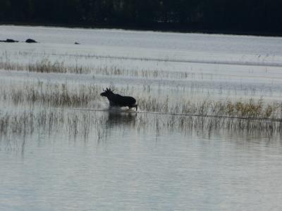 Im Garten ist außer Laubrechen nichts mehr zu tun, und so haben wir auch nicht mehr viel Stress. Es bleibt sogar Zeit am See zu sitzen und den Enten zuzuschauen, oder unseren Singschwan zu beobachten. Die meisten Vögel haben uns verlassen, aber dafür beginnt die Brunft der Elche und Rehe und so haben wir sogar einen Elchbullen durch den See auf unsere Insel schwimmen sehen. Wenig später ist dann ein wohl jüngerer Elch auf die gleiche Weise von der Insel ans Festland abgehauen. Jetzt hat der Größere die Insel für sich und auch die Elchkuh die dort lebt. Wir haben die Insel jetzt Liebesinsel getauft und mal sehen, ob wir nächstes Jahr Zwillinge haben.