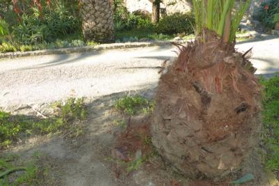 leider gibt es auch in Portugal immer größere Probleme mit dem Palmenrüsselkäfer. Viele der Dattelpalmen die zum Landschaftsbild gehören sind erkrankt oder schon abgestorben. Im Vergleich zum letzten Jahr können wir die Schäden durch den Käfer deutlich erkennen. In der Nachbarschaft sind viele alte Palmen bereits tot oder schon gefällt. Die Larve dieser Käfer frißt sich ins Palmenherz um sich dort zu verpuppen. Jeder Käfer legt bis zu 300 Eier und wenn man den Stamm öffnet, findet man viele der Larven. Sie sind bis zu 7cm groß und nicht zu übersehen.